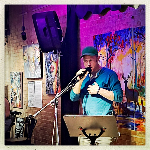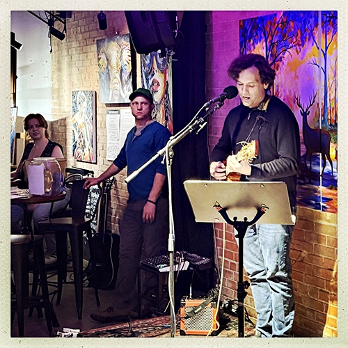 We’re at our usual haunt - Bramblitt’s Yellow Dog Art Bar & Gallery.
