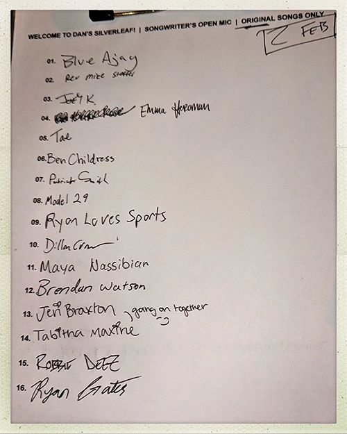Dan’s Silverleaf is home to a weekly Monday-night Songwriter’s Open Mic hosted by Justin Collins.